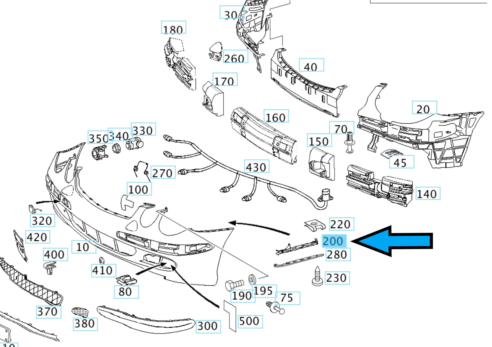 Ślizg zderzaka przedniego MERCEDES W203 W209 A2038801214 prawy